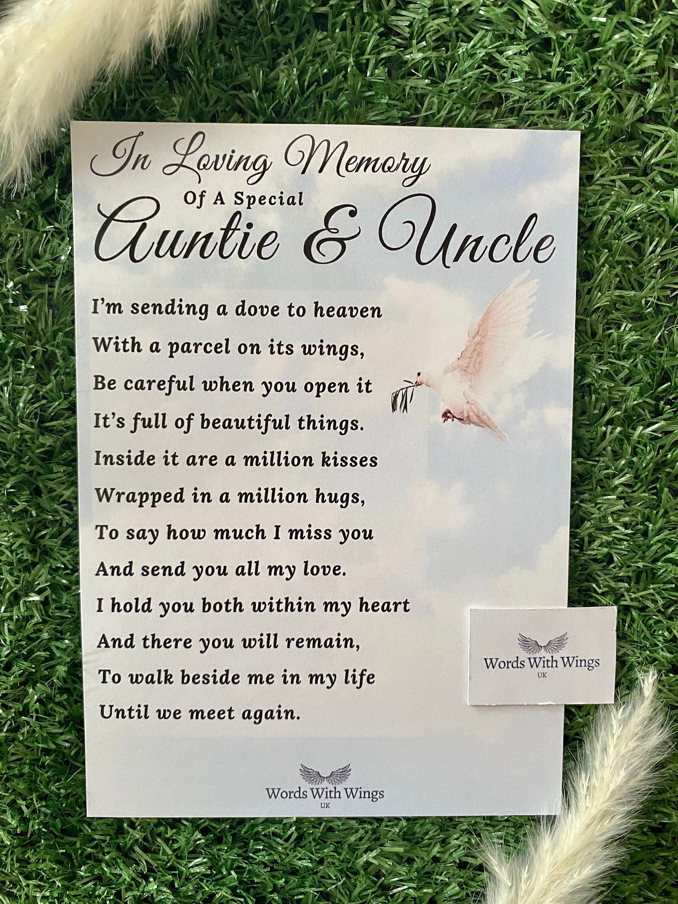 In Loving Memory Of A Special Auntie Uncle Grave Card Etsy Uk