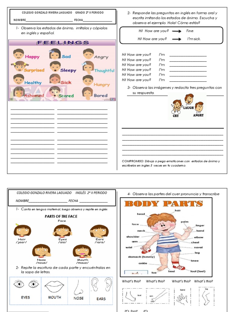 Guia Ingles Ii Periodo 2 Reformadas Es De Animo Partes Del Cuerpo Pdf Linguistica